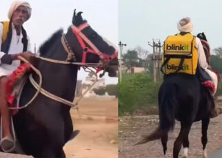 ഡെലിവറി ബോയിയല്ല, ഇത് ഡെലിവറി ‘രാജാവ്’! കുതിരപ്പുറത്ത് പറന്നെത്തി ബ്ലിങ്കിറ്റ് ഡെലിവറി; വീഡിയോ വൈറൽ