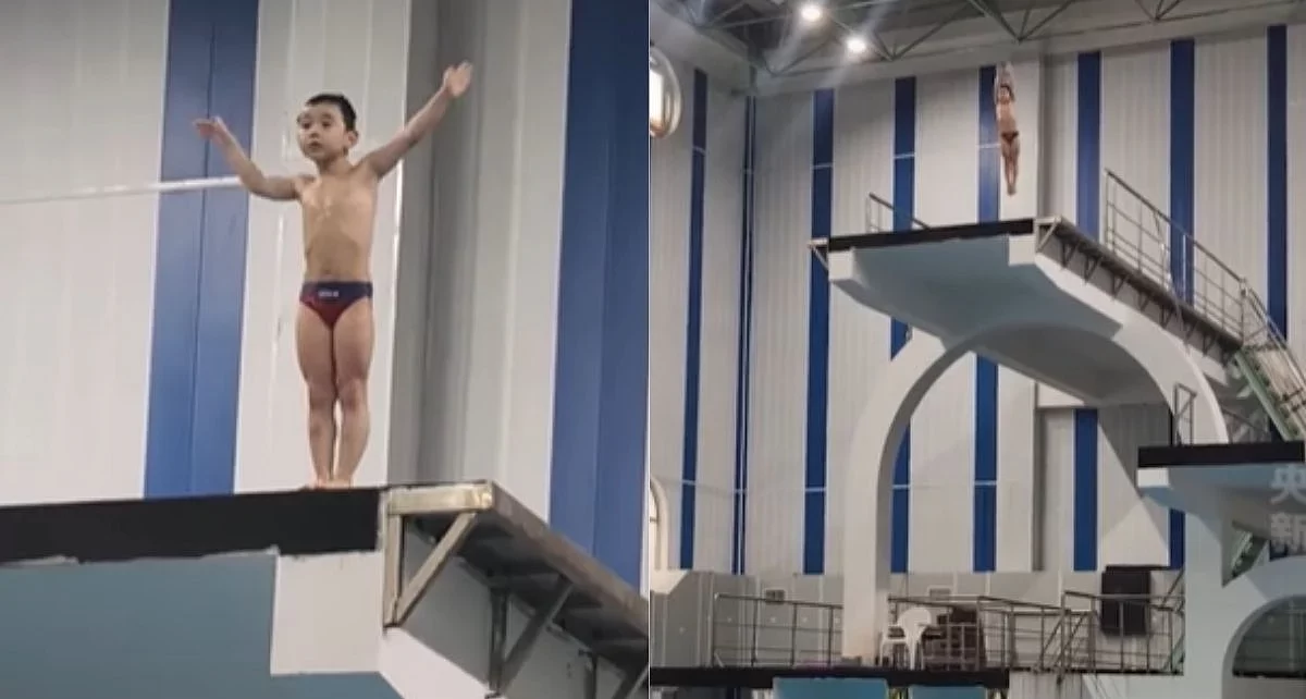 കളിപ്പാട്ടങ്ങൾക്കായി വാശി പിടിക്കുന്ന പ്രായത്തിൽ, ചൈനയിൽ നിന്നുള്ള ഒരു ആറ് വയസ്സുകാരൻ്റെ സാഹസികമായ ഡൈവിംഗ് എല്ലാവരെയും അത്ഭുതപ്പെടുത്തി. 10 മീറ്റർ ഉയരത്തിൽ നിന്നുള്ള ഈ പ്രകടനം സോഷ്യൽ മീഡിയയിൽ വൈറലാവുകയും, നിരവധി പേർ ഈ കുട്ടിയെ അഭിനന്ദിക്കുകയും ചെയ്യുന്നു.