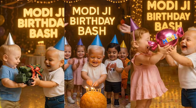 പ്രധാനമന്ത്രി നരേന്ദ്ര മോദിയുടെ 75-ാം ജന്മദിനത്തിൽ പോസ്റ്റ് ചെയ്ത AI നിർമ്മിതമായ മനോഹരമായ ഒരു വീഡിയോ ഓൺലൈനിൽ വൈറലായിരിക്കുകയാണ്. “മോദിജി ബർത്ത്ഡേ ബാഷ്” എന്ന് പേരിട്ടിരിക്കുന്ന ഈ വീഡിയോയിൽ പ്രധാനമന്ത്രി മോദിയെയും ലോക നേതാക്കളെയും കൊച്ചു കുട്ടികളായാണ് കാണിച്ചിരിക്കുന്നത്. ഇറ്റാലിയൻ പ്രധാനമന്ത്രി ജോർജിയ മെലോണി മുതൽ യുഎസ് പ്രസിഡന്റ് ഡൊണാൾഡ് ട്രംപ് വരെയുള്ള ലോകനേതാക്കൾ പ്രധാനമന്ത്രി മോദിക്ക് അതുല്യമായ സമ്മാനങ്ങൾ നൽകുന്നതാണ് ഈ വൈറൽ വീഡിയോയിലുള്ളത്.