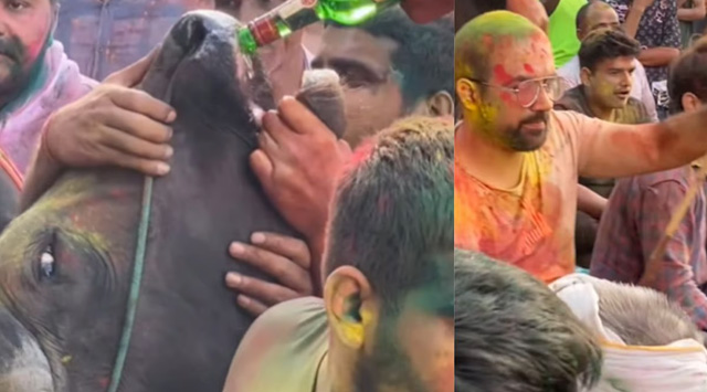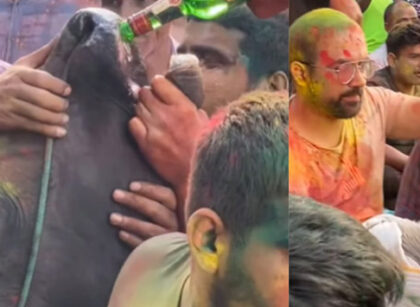 ഹോളി ലഹരിയിൽ ക്രൂരത; പശുവിനെ ബലമായി മദ്യം കുടിപ്പിച്ചു, വണ്ടി വലിപ്പിച്ചു; വൻ പ്രതിഷേധം- വീഡിയോ