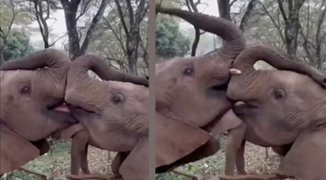 പരസ്പരം ചുംബിക്കുന്ന കുട്ടിയാനകൾ ! സ്വാഭാവികവും വന്യവുമായ സഹോദരസ്നേഹം; വൈറല് വീഡിയോ