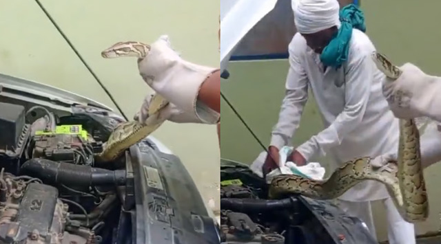 ചൂടുപറ്റി ഇരുന്നതാ … കാറിന്റെ എഞ്ചിനിൽ ഒളിച്ചിരുന്ന് കൂറ്റൻ പെരുമ്പാമ്പ് ! വീഡിയോ