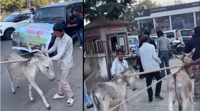 മഹീന്ദ്ര ഥാര് വാഹനത്തിന് മുന്നില് രണ്ടു കഴുതകളെ കെട്ടി സര്വീസ് സെന്ററിലേക്ക് വലിച്ചു കൊണ്ടുവരുന്നതാണ് വീഡിയോ. കഴുതകളെ കെട്ടിയെങ്കിലും അവയെക്കൊണ്ട് വലിച്ചുനീക്കാനാകാതെ കാറുടമയും സുഹൃത്തുക്കളും തള്ളിനീക്കിയാണ് വാഹനം സര്വീസ് സെന്ററിലെത്തിച്ചത്. തകരാറുള്ള വാഹനങ്ങള് നൽകി ഉപഭോക്താക്കളെ വഞ്ചിക്കുകയാണെന്ന് എഴുതിയ ബാനറും വാഹനത്തിന് മുന്നില് തൂക്കിയിട്ടിരുന്നു. സംഭവം പ്രദേശത്ത് വലിയ ആള്ക്കൂട്ടമുണ്ടാക്കി, സോഷ്യല് മിഡിയയിലും കാഴ്ചക്കാരെ കൊണ്ട് നിറഞ്ഞു.