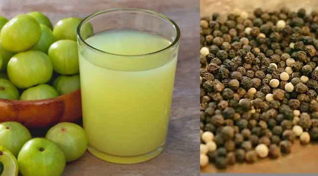 ആരോഗ്യത്തിന് വളരെയധികം ഗുണകരമായ ഒരു പാനീയമാണ് നെല്ലിക്ക ജ്യൂസ് . വൈറ്റമിന്‍ സിയും ധാരാളം ആന്‍റി ഓക്സിഡന്‍റുകളും നെല്ലിക്ക ജ്യൂസില്‍ അടങ്ങിയിരിക്കുന്നതുകൊണ്ട് ഇത് ഡയറ്റില്‍ ഉള്‍പ്പെടുത്തുന്നത്കൊണ്ട് നിരവധി ഗുണങ്ങളുണ്ട്. എന്നാല്‍ നെല്ലിക്ക ജ്യൂസില്‍ അല്‍പം കുരുമുളക് കൂടി ചേര്‍ത്താല്‍ ഗുണങ്ങള്‍ ഏറെയാണ്. ശരീരത്തില വിഷാംശങ്ങളെ നീക്കം ചെയ്യുന്നതോടൊപ്പം രോഗപ്രതിരോധശേഷി വര്‍ധപ്പിക്കാനും ഇത് സഹായിക്കുന്നു.