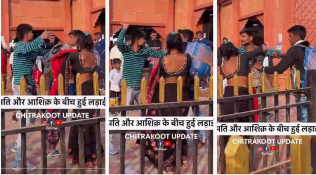 തർക്കം തുടരുന്നതിനിടയിൽ, കഴ്ചക്കാരായെത്തിയ കുറച്ച് പേര്‍ എന്താണ് കാരണമെന്ന് അന്വേഷിക്കുന്നു. ഈ സമയം ഭര്‍ത്താവ് ഇത് തന്റെ ഭാര്യയാണെന്ന് പറയുന്നു. താന്‍ വഞ്ചിക്കപ്പെട്ടതായും ഭാര്യയെ മറ്റേ യുവാവ് തട്ടിക്കൊട്ട് പോകാന്‍ ശ്രമിക്കുകയാണെന്നും ഇയാൾ ആരോപിക്കുന്നു. എന്നാല്‍ യുവതി കാമുകനൊപ്പം പോകാന്‍ വിസമ്മതിക്കുകയും അതേസമയം ഭര്‍ത്താവിനോട് തർക്കത്തിലേര്‍പ്പെടുകയും ചെയ്യുന്നതും വീഡിയോയില്‍ കാണാം.