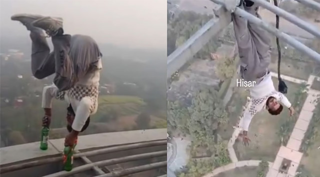 ഹരിയാനയിലെ ഹിസാറിലുള്ള പ്രശസ്തമായ ഒ.പി ജിൻഡാൽ ടവറിന് മുകളിൽ യുവാവ് നടത്തിയ ജീവൻ പണയപ്പെടുത്തിയുള്ള സാഹസിക പ്രകടനങ്ങളുടെ വീഡിയോ സോഷ്യൽ മീഡിയയിൽ വ്യാപകമായി പ്രചരിക്കുന്നു. രാജസ്ഥാൻ സ്വദേശിയായ മോനു എന്ന യുവാവാണ് യാതൊരു സുരക്ഷാ മാനദണ്ഡങ്ങളും പാലിക്കാതെ 282 അടി ഉയരമുള്ള ഗോപുരത്തിന് മുകളിൽ കയറി അഭ്യാസപ്രകടനം നടത്തിയത്. ഇത് സുരക്ഷാ വീഴ്ചയെക്കുറിച്ചും പൊതു സുരക്ഷയെക്കുറിച്ചും ഗുരുതരമായ ആശങ്കകൾ ഉയർത്തിയിട്ടുണ്ട്.