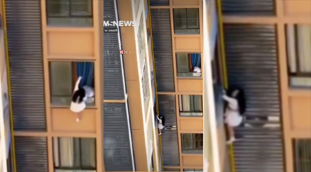 ചൈനയിലെ ഗുവാങ്ഡോങ്ങിൽ നിന്നുള്ള ഞെട്ടിക്കുന്ന ഒരു വീഡിയോ സോഷ്യൽ മീഡിയയിൽ വൈറലായിരിക്കുകയാണ്. പത്താം നിലയിലെ ബാൽക്കണിയിൽ പിടിവിട്ടു പോകുമെന്ന അവസ്ഥയിൽ തൂങ്ങിക്കിടക്കുന്ന ഒരു യുവതിയെ വീഡിയോയിൽ കാണാം. നവംബർ 30-നാണ് ഈ സംഭവം നടന്നതെന്നാണ് റിപ്പോർട്ടുകൾ സൂചിപ്പിക്കുന്നത്.