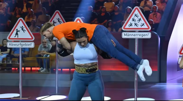 അസാമാന്യമായ ശാരീരിക കരുത്തും വേഗതയും പ്രകടിപ്പിച്ചുകൊണ്ട് വെറും 37.44 സെക്കൻഡിനുള്ളിൽ പത്ത് പുരുഷന്മാരെ ഉയർത്തി എറിഞ്ഞ് ഒരു വനിതാ അത്ലറ്റ് ഗിന്നസ് ലോക റെക്കോർഡ് സ്ഥാപിച്ചു. ജർമ്മൻ സ്ട്രോങ്ങ് വുമൺ ആയ സീന റുപ്പൻതാലാണ് (Sina Ruppenthal) ഈ അത്ഭുതകരമായ നേട്ടം കൈവരിച്ചത്. ഓരോ പുരുഷനെയും വ്യക്തിഗതമായി ഉയർത്തി തന്റെ തോളിലൂടെ പിന്നിലേക്ക് എറിയുകയായിരുന്നു വെല്ലുവിളി. ശാരീരിക കരുത്തിനൊപ്പം കൃത്യമായ ഏകോപനവും സഹിഷ്ണുതയും ആവശ്യമായ ഈ പ്രകടനം മ്യൂണിക്കിൽ നടന്ന ഒരു ടിവി ഷോയ്ക്കിടെയാണ് അരങ്ങേറിയത്.
