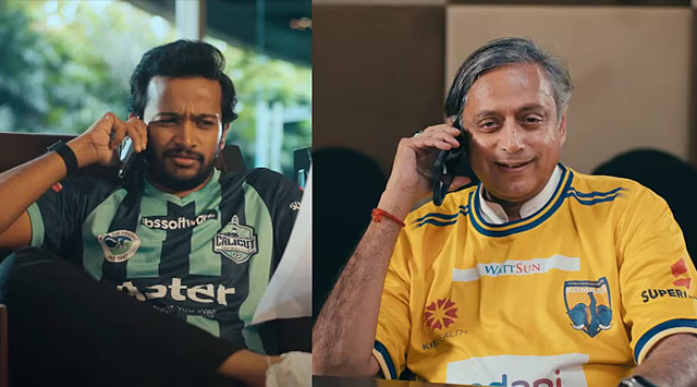 ശശി തരൂരും ബേസിൽ ജോസഫും ഒന്നിച്ചുള്ള ‘സൂപ്പർ ലീഗ് കേരള’യുടെ പുതിയ പ്രമോ വീഡിയോയാണ് ഇപ്പോള് ഇന്റര്നെറ്റില് ശ്രദ്ധ നേടുന്നത്. തരൂരിന്റെ ‘ഒടുക്ക’ത്തെ ഇംഗ്ലീഷിന് മുന്നിൽ പതറാതെ തിരിച്ചടിക്കുന്ന ബേസിലിനെ വീഡിയോയിൽ കാണാം. പക്ഷേ, ഇംഗ്ലീഷ് മാത്രമല്ല, ബേസിലിനെ മലയാളവും പറഞ്ഞ് ഞെട്ടിക്കുകയാണ് തരൂര്. വീഡിയോയുടെ ഹൈലൈറ്റ് ഈ മലയാളം ഡയലോഗ് ആണ്. ‘‘ഇടഞ്ഞ കൊമ്പന്റെ കൃഷ്ണമണിയിൽ തോട്ടി കയറ്റി കളിക്കല്ലേ..’’ എന്നാണ് തരൂർ ബേസിലിനോട് പറയുന്നത്. പ്രമോ വീഡിയോയുടെ ആദ്യ എപ്പിസോഡില് നടന് പൃഥ്വിരാജുമായുള്ള ബേസിലിന്റെ Read More…