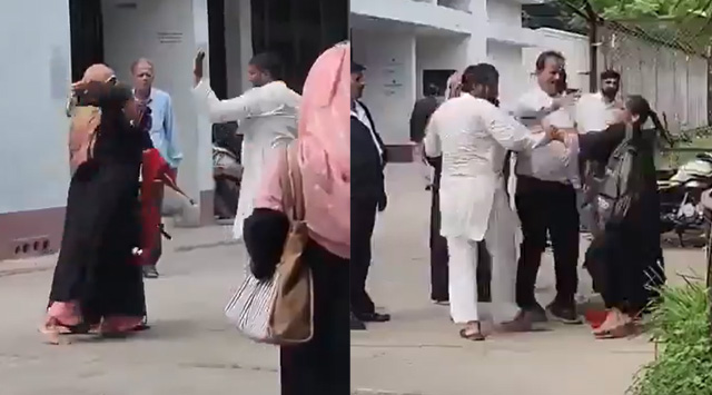 ഭര്ത്താവും കോടതിക്ക് പുറത്തുവച്ച് തലാഖ് ചൊല്ലി; ചെരുപ്പൂരി തല്ലി ഭാര്യ- വീഡിയോ