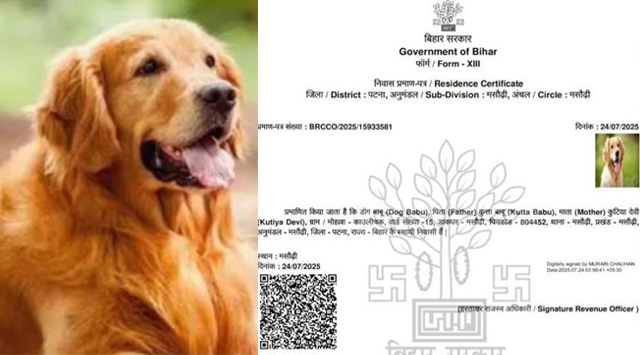 പേര് ഡോഗ് ബാബു, പിതാവ് കുട്ട ബാബു, മാതാവ് ‘കുട്ടിയ ദേവി’… ; നായയ്ക്കു നല്കിയ താമസ സര്ട്ടിഫിക്കറ്റ് വൈറല്