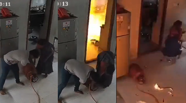 ആയുസ്സിന്റെ ബലം ! ലീക്കായ ഗ്യാസ് സിലിണ്ടര് പൊട്ടിത്തെറിച്ചു, അദ്ഭുതകരമായ രക്ഷപെടല്; വീഡിയോ