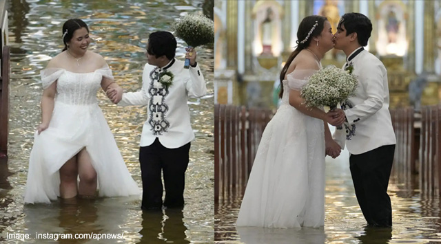 പ്രളയത്തെ തോല്പ്പിച്ച പ്രണയം; മുട്ടറ്റം വെളളത്തില് വിവാഹം, വൈറലായി ഫിലിപ്പീന് ദമ്പതികള്