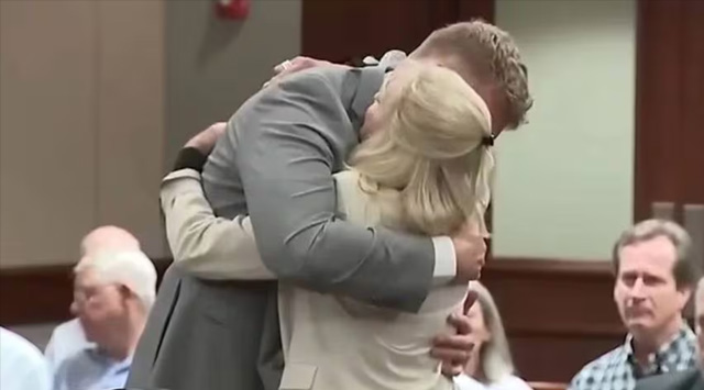 ഭര്ത്താവിന്റെ ജീവനെടുത്ത യുവാവിന് മാപ്പ് നല്കി കോടതിയില്വെച്ച് ആലിംഗനം ചെയ്തു യുവതി