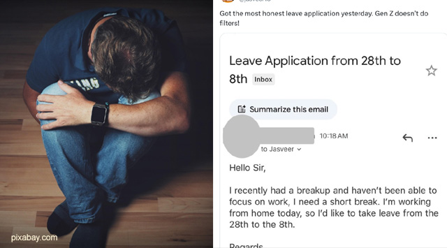 ലീവ് കിട്ടാന് ഇല്ലാത്ത അസുഖവും ചടങ്ങുകളും കാരണമാക്കുന്ന ഇക്കാലത്ത്, ഗുരുഗ്രാമിലെ ഐടി കമ്പനിയിലെ ഒരു യുവജീവനക്കാരൻ സത്യസന്ധത കാണിക്കാൻ തീരുമാനിച്ചു. അത് ഫലിക്കുകയും ചെയ്തു. പ്രണയബന്ധം തകര്ന്നതിനെത്തുടര്ന്ന് മാനസികമായി തളര്ന്നെന്നും ജോലിയില് ശ്രദ്ധ കേന്ദ്രീകരിക്കാന് കഴിയുന്നില്ലെന്നും ജോലിയില്നിന്ന് കുറച്ച് ദിവസം മാറിനില്ക്കാന് അവധി വേണമെന്നും പറഞ്ഞാണ് ഈ ജീവനക്കാരന് മേലധികാരിക്ക് മെയില് അയച്ചത്.