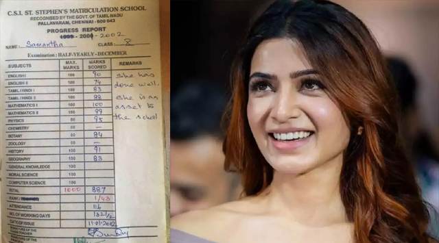 സ്കൂള് കാലത്ത് സാമന്ത പഠിക്കാന് എത്രമാത്രം മിടുക്കിയാണെന്ന് ഈ സ്കോര്ഷീറ്റ് കാണിക്കുന്നു. എല്ലാ വിഷയത്തിനും താരം മോശമല്ലാത്ത മാര്ക്കുകളാണ് മേടിച്ചിരി ക്കുന്നത്. ഗ്രേഡുകള് താരത്തിന്റെ അത്ര അറിയപ്പെടാത്തതും പഠനാത്മകവുമായ വശം വെളിപ്പെടുത്തിയതോടെ പലരും അവളെ സമ്പൂര്ണ്ണ പാക്കേജ് എന്നാല് ഇപ്പോള് വിളിക്കുന്നത്. കമന്റുകളുടെ കൂട്ടത്തില് ഹൃദയങ്ങളെ കീഴടക്കിയത് അവള് ‘സ്കൂളി ന് ഒരു മുതല്ക്കൂട്ടായിരുന്നു’ എന്ന് എഴുതിയ അവളുടെ അദ്ധ്യാപകരില് ഒരാളുടെ അഭിപ്രായമായിരുന്നു.
