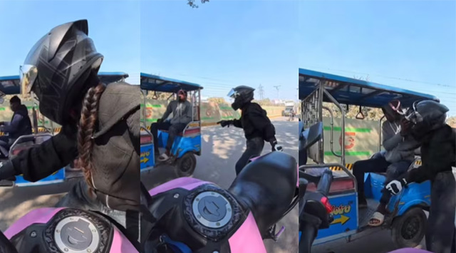 യുവതി തന്റെ ബൈക്കിൽ യാത്ര ചെയ്യുമ്പോഴാണ് തൊട്ടടുത്തെത്തിയ ഇ-റിക്ഷയിലിരുന്ന ഒരാൾ മോശമായി പെരുമാറിയത്. ഇത് അവഗണിച്ച് പോകാൻ യുവതി തയ്യാറായില്ല. ഉടൻ തന്നെ ബൈക്ക് നിർത്തി യുവതി ഇയാളെ ചോദ്യം ചെയ്തു. ബൈക്കിലെ ക്യാമറയിൽ ഇയാൾ അശ്ലീല ആംഗ്യം കാണിക്കുന്നത് വ്യക്തമായി പതിഞ്ഞിരുന്നു.